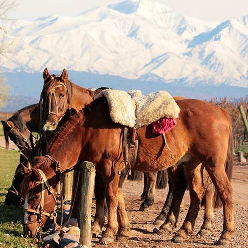 Cabalgaremos en una estancia privada en el exclusivo Valle de la Carrera. Luego de 2 horas de cabalgata, pasaremos un día de campo acompañado de degustación de vinos, asado y mates por la tarde.
