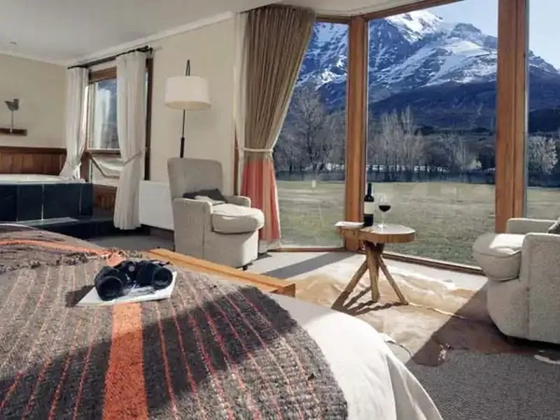 Este fantástico hotel se encuentra en uno de los últimos rincones del planeta, específicamente en el interior del Parque Nacional Torres del Paine, un paraíso natural con bosques, lagos y lagunas de aguas transparentes, ríos de color turquesa, bosques centenarios, y asombrosos y gigantes glaciares.